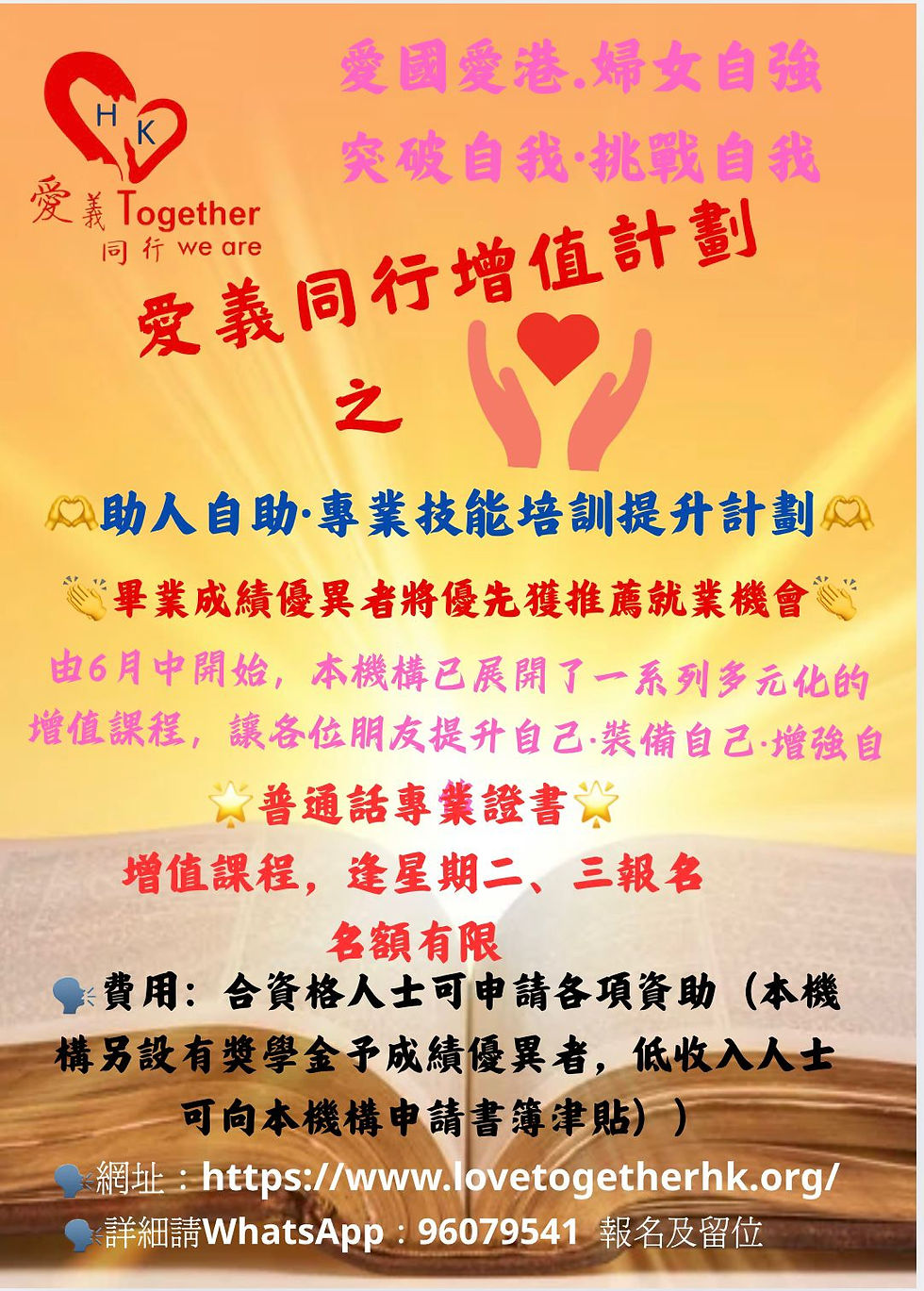 愛國愛港·婦女自強·突破自我·挑戰自我 ❤️愛義同行增值計劃❤️